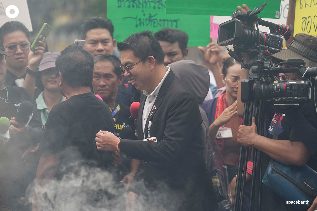 จากนั้นเครือข่ายประชาชนฯ ได้เคลื่อนขบวนออกจากหน้ากระทรวงเกษตรฯ เพื่อไปยังทำเนียบรัฐบาล โดยหยุดปักหลักบริเวณหน้าประตูกระทรวงศึกษาธิการ ฝั่งตรงข้ามประตู 5 ทำเนียบรัฐบาล เพื่อรอยื่นหนังสือถึงนายกรัฐมนตรี